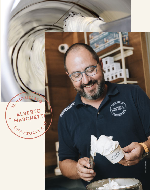 Alberto Marchetti Gelateria is a renowned gelato shop based in Turin, Italy, recognized for its commitment to quality and traditional craftsmanship. Alberto Marchetti, who grew up immersed in the world of gelato in his family's creamery near Turin, personally selects high-quality ingredients from across Italy, including many Slow Food Presidia.